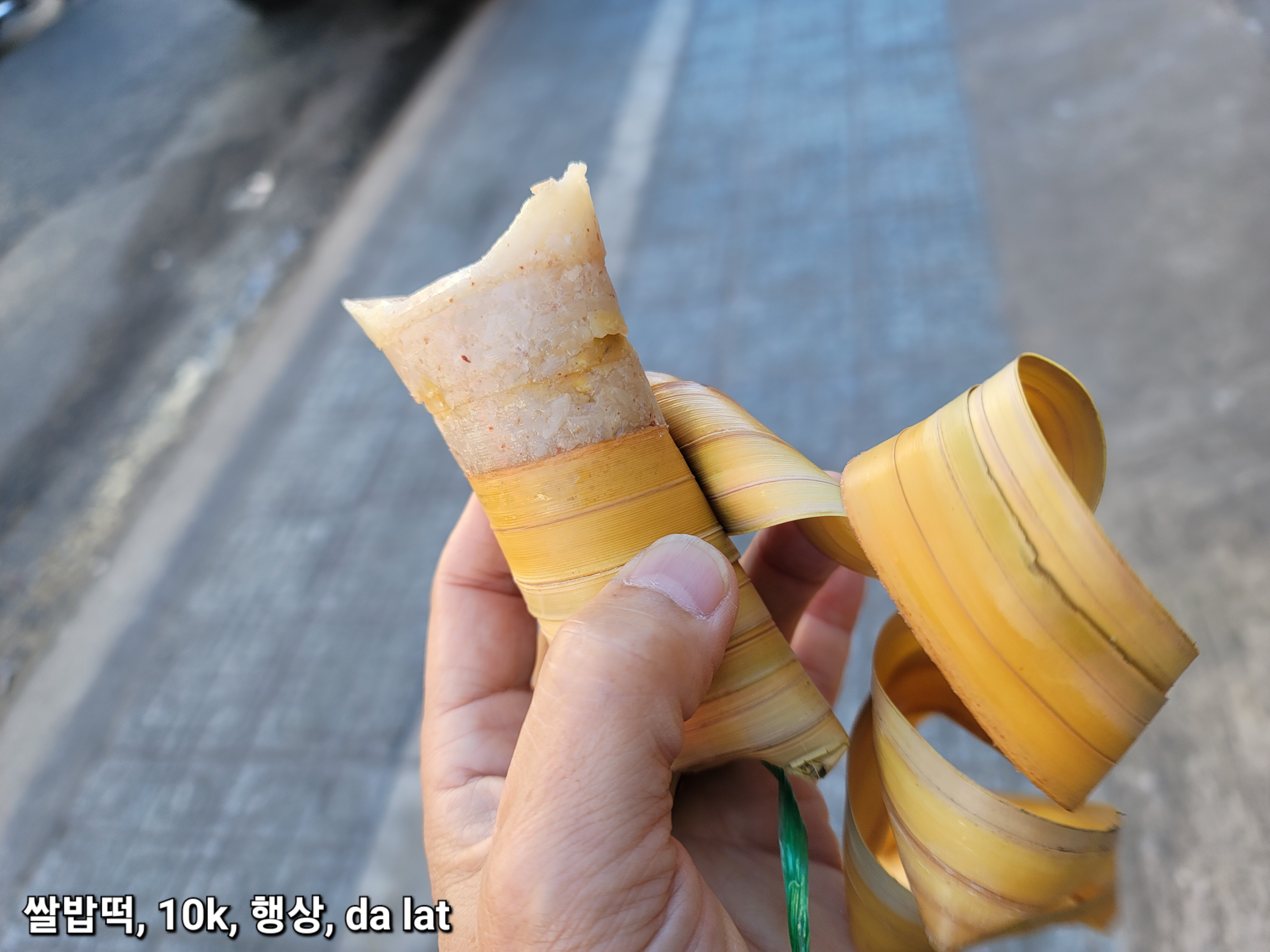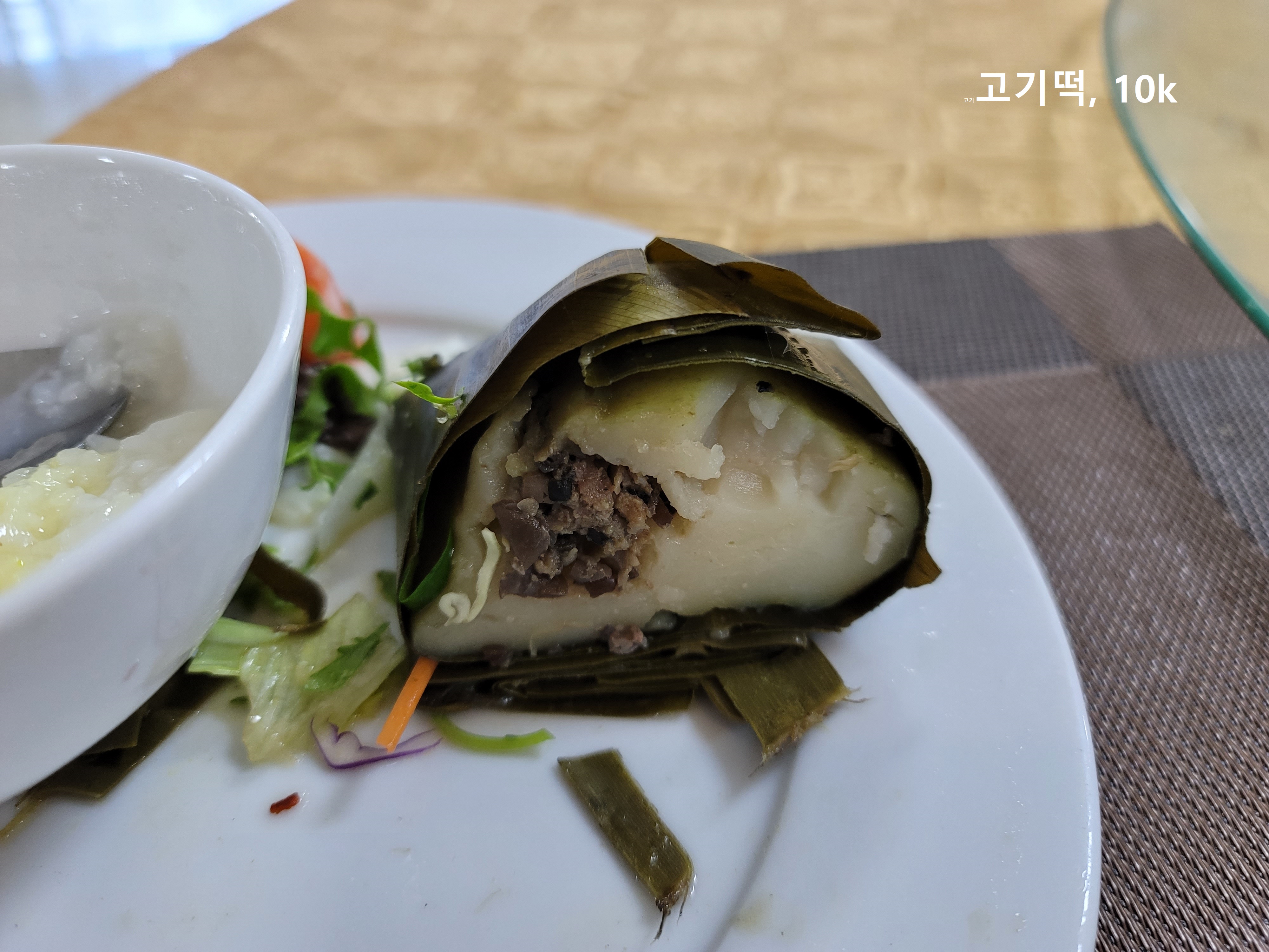 덤으로 고기 속이 있는 떡을 먹었다. 나뭇잎에 싸여져 있는 폼이 완전 자연이었다.