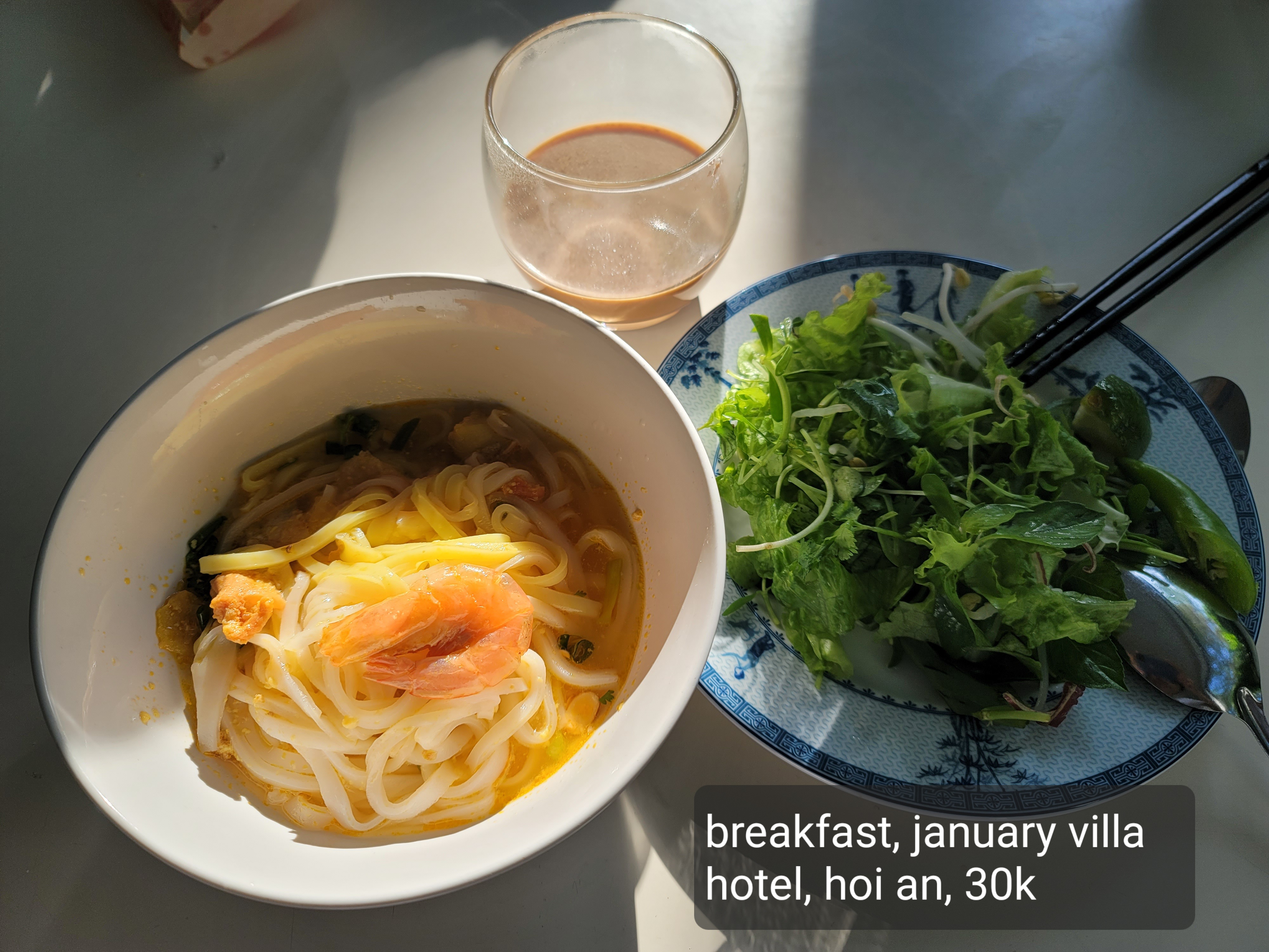 커피, 쌀국수, 야채